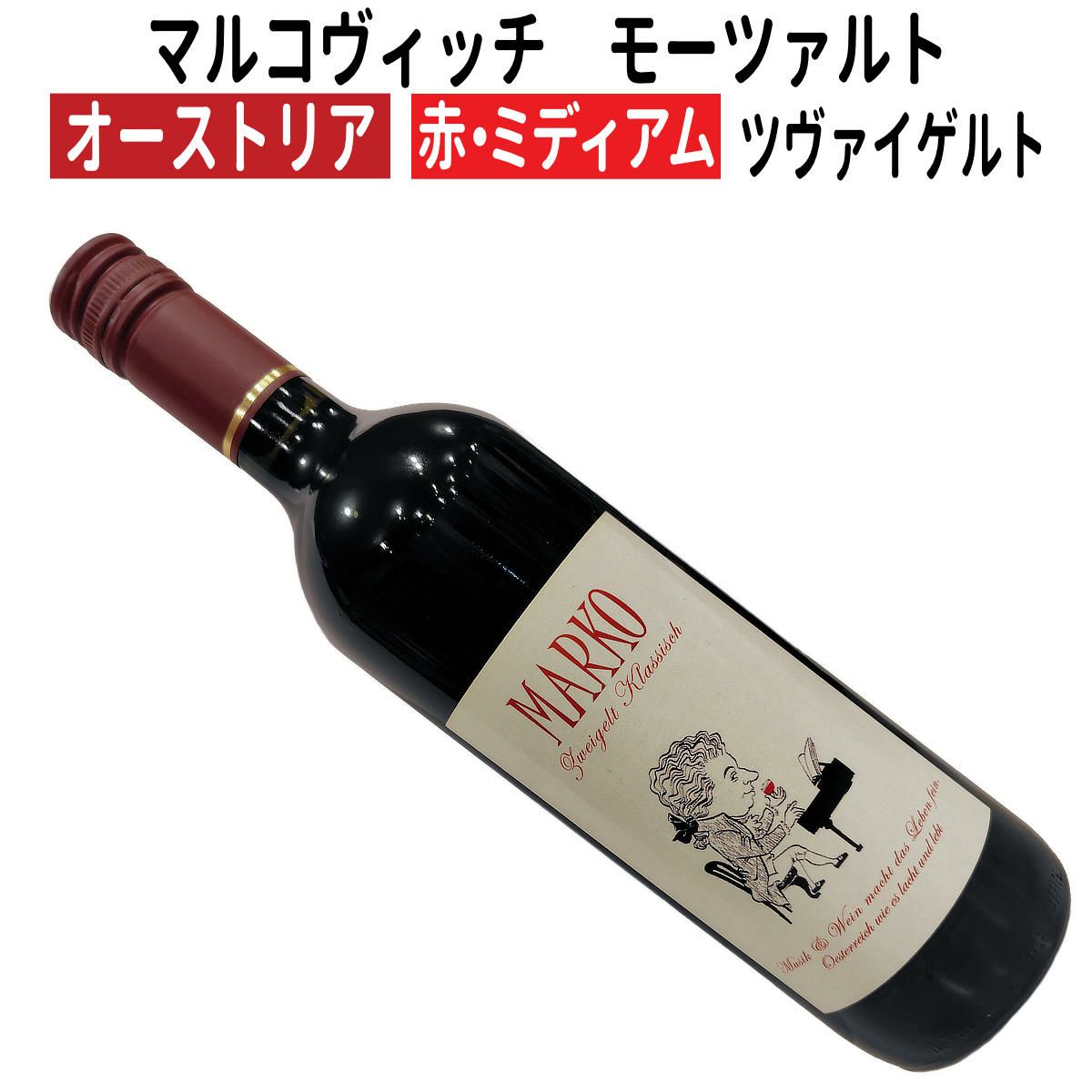 他の画像を見る オーストリアワイン|マルコヴィッチ モーツァルト ツヴァイゲルト クラシック 2022赤ワイン ミディアムボディ オーストリアワイン 赤ワイン・ミディアムボディー クール便は別料金(地域と本数によって異なります) 当店通常販売価格 ¥ 2,995 税込 会員特別価格 ¥ 2,950 税込 詳細を見る お気に入りに登録する