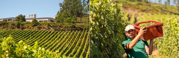 ワイナリーでは、自然を尊重し、極力介入を控えることを哲学に掲げています。70haある畑はリュット・レゾネで管理され、ブドウは手作業で選別し、最適な成熟度を見極めて収穫されます。醸造では伝統的手法を採用し、果実の自然な特性を最大限に引き出すことを目指しています。2012年からは、ライジング・スターとして注目を集めるワインメーカー、ジョアン・カブラル・デ・アルメイダがチーフ・ワインメーカーとしてワイナリーに加わりました。リスボンで農業工学を学び、ヴィーニョ・ヴェルデ、ダン、ドウロ、さらにはアルゼンチンでもワイン造りに携わった経歴を持つ彼は、ヴィーニョ・ヴェルデで最も著名な醸造家であるアンセルモ・メンデスのもとで研鑽を積みました。彼の目指すスタイルは、テロワールのキャラクターを表現するフレッシュでエレガントなワインです。また、「ワインは食事と楽しむもの」というポルトガルの伝統的な価値観を重視し、地元の文化や料理、特に新鮮な魚介類に合うワインを目指しています。自社のレストラン「ラルゴ・ド・パソ」では、これらのワインが料理とともに提供され、上質なダイニング体験を演出しているのです。