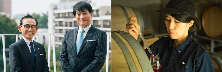 甲州盆地の南東に位置する京戸川扇状地。ブドウ畑が広がる、なだらかな斜面の中腹にフジクレールワイナリーはあります。山梨県産のブドウを使い、大量生産を行わず、あくまでも手作りで限定生産を行っています。「ワインはブドウからつくられている」という信念の基、使用するブドウは自家栽培ブドウに加え可能な限りワイナリーに近く、いつでも話に行ける農家のと契約栽培ブドウのみ。日々畑に出掛け、ブドウの様子を見続けることを大切にしています。また、出来るだけ農薬の使用を減らし、土から造るブドウ栽培を目指しています。日本人ならではの食文化と感性に合うワイン造りを重視し、生み出されるワインは高品質なものばかり。2000年には、ISO9002証認を取得した、自然環境にも配慮した意識の高い醸造所です。