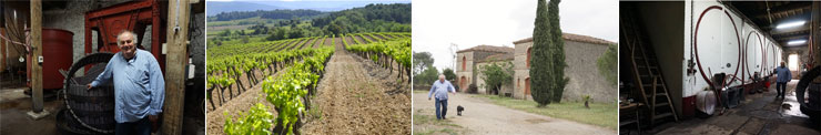 ミネルヴォワの中心バダン村の生産者です。現在は、生産量の1/3はネゴシアンなどに売り、残りを瓶詰めしています。ドメーヌ名はシャトー・ミロスです。土壌は石灰質で、その下40cmが石の土壌です。グルナッシュはこの土地に向かないとコンサルタントに言われましたが、無視して植えたところ、最高のグルナッシュが出来ました。畑の作業は2人で行い、グリーンハーベストをしています。