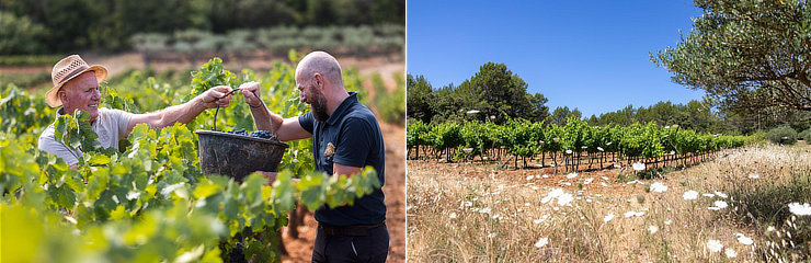 ブドウ畑に木を植え地被植物を活用するなど、生きた土壌と生物多様性を維持するために最新の環境対策を行っています。CO2排出削減のため資材は地元業者から調達、軽量ボトルやバイオ原料を使用したキャップシールを採用する取り組みを行い、プロヴァンス地方のコルク樫の栽培も支援しています。エスタンドンは現在、プロヴァンス産オーガニックワインのトップメーカーです。