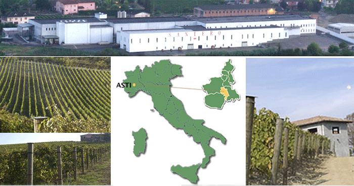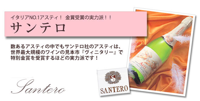 1956年に創立された「サンテロ」社は現在、最新技術と品質分析研究所を備えた醸造所と優れた人材を持ち、年間総生産量2,000万本ものワインを生産する巨大ワイナリーへと発展しました。この急激なサクセスストーリーの秘訣はサンテロ・ファミリーの家族哲学にあり、リーズナブルな価格でより良い品質提供、すなわち品質、価格、提案、サービス、それら全ての可能性へのあくなき追求の継続でした。たゆまぬ努力の結果、その品質はイタリア中に認められ、ヴィニタリー国際醸造コンクールにおいて度々金賞を受賞しています。特にスプマンテの評価が高く、ヴィニタリー2003においてアスティ部門でNo.1の評価を獲得しました。
