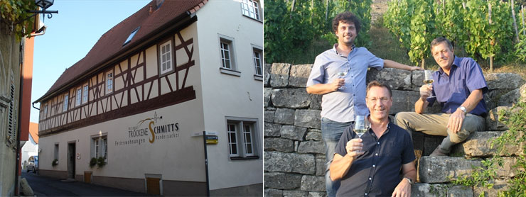 2002年、パウルとブルーノ・シュミット兄弟が別々に営んでいたワイングートが合併し、現在のトロッケネ・シュミッツが誕生しました。トロッケネ・シュミッツのポリシーはその名前が示すとおり「辛口」を造ることです。(トロッケネ・シュミッツは「辛口のシュミッツ」という意味)。名前の由来ですが、ワイングートのあるランダースアッカー村にはシュミッツと名がつくワイングートが数軒あり、辛口ワインで知られるこちらのワイングートのことを指す際に、地元の人々が他と区別するために「トロッケネ・シュミッツ(辛口のシュミッツ)」と呼ぶようになり、この通称が現在のワイングートの名前になりました。