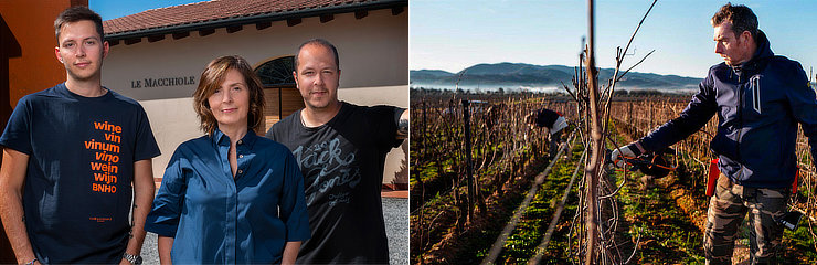 トスカーナ州ボルゲリで、唯一農家がはじめたワイナリー。初代オーナー故エウジェニオ・カンポルミ氏はこの地の可能性を見出し、惜しみない努力を注いできました。メルロー100%で造られるプレミアムワイン、「メッソリオ」は2004年にワインアドヴォケイト誌で100点を獲得して以来、世界のワインファンを魅了しています。エウジェニオが亡くなった後、妻チンツィアと家族が彼の意思を引き継ぎ、2009年にはイタリア最優秀ワイナリーと評されるまでになります。トスカーナ最高峰のメルローといえばマッセート、レディガフィ、そしてメッソリオ。中でもその優美さは右岸のボルドーをも圧倒する別格の存在としてワイン・アドヴォケイト誌でも高い注目を集めています。