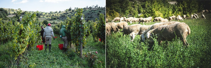 現在、標高1,000mの山岳地帯に5.5haの葡萄畑を所有しています。畑はモンティ・シビッリーニ国立公園の中に位置しており、マルケ州の中で最も高い葡萄畑かつ、イタリアでも有数の高地にあります。これは「CERVIM(山岳葡萄の研究、調査センター)」が定義する“ヒロイック・ヴィティカルチャー(英雄的な葡萄栽培)”に該当し、管理が非常に困難な地域で行われる葡萄栽培であることが示されています。恵まれた自然の中にある畑で、環境を尊重したオーガニック栽培を実践しています。近くにそびえるトランキッラ山が、山から吹く冷たい風を遮ってくれ、葡萄栽培に理想的なマイクロクライメートを生み出します。山々に囲まれた畑の周辺にはフェンネルや野生のミント、野ばらや様々なハーブが自生する小さな楽園のようです。栽培品種の内訳は、ヴィッサネッロ2.0ha(2013年に1ha、2023年に1ha植樹)、シャルドネ1.5ha(2013年に植樹)、ピノ・ネーロ1.5ha(2013年に1ha、2022年に0.5ha植樹)、マルベック0.5ha(2025年に実験的に植樹)です。