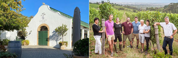 2000年設立。1685年南アフリカで最初にブドウ栽培が始まったコンスタンシア地区にある「グレン」とは、「谷」を意味します。冷たい大西洋に囲まれ冷涼で、比較的降水量も多い地区。冷涼コンスタンシア地区のボルドー品種を使った優等生的な生産者のコンスタンシア・グレン。冷涼気候によりブドウはゆっくりと成長。一粒ずつの厳選なブドウ選果とポンプを使わないグラヴィティ・システムを採用しています。白も赤もフレッシュで豊かな酸味、しっかりした骨格とボディ、洗練されたエレガントで美しいワインを生み出しています。同社ワインのキーワードは、「エレガンス、フィネス(洗練された)、バランス、コンプレックス(複雑味)」です。コンスタンシア・グレンは、コンスタンシア地区の中でも収穫が一番遅く、周辺の生産者より10日間程遅く、それだけブドウのハンギングタイムが長い=凝縮した上質なブドウを収穫できるのは大きなアドバンテージです。また、コンスタンシア・グレンのある場所は、北のテーブルマウンテンと南のコンスタンシア山脈の間に挟まれたコンスタンシア・ネックと呼ばれる少し凹んだ所にあります。それにより、2~4月にかけての夏の夕方の西側からの日差しが、周辺地域の生産者より1時間長く照らすため(日没が1時間遅い)に暖かい斜面も持っており、冷涼気候で白ブドウが盛んな地域にありながら、ボルドー赤品種も沢山植えられています。畑の斜面は、北から東を向いており、土壌は花崗岩と砂岩で、ワインにミネラルを与えています。また、その土壌の下には、粘土が広がり、土壌の水分も維持しており、畑では、エコロジーを意識し、自然な農法を実施しています。