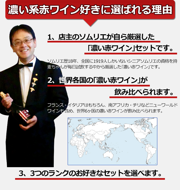 「濃い赤ワイン」世界各国飲み比べ6本セット