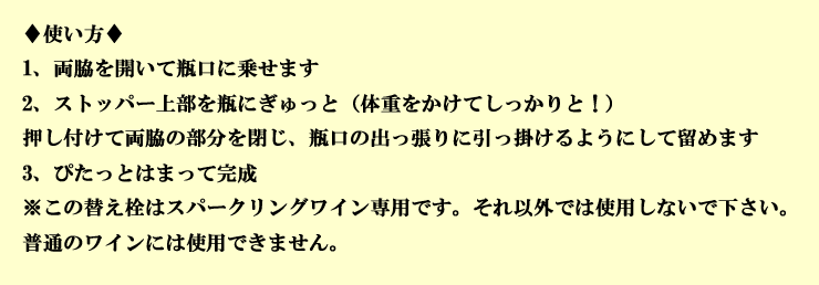 飲みきれなくても安心な、スパークリングワインストッパー。