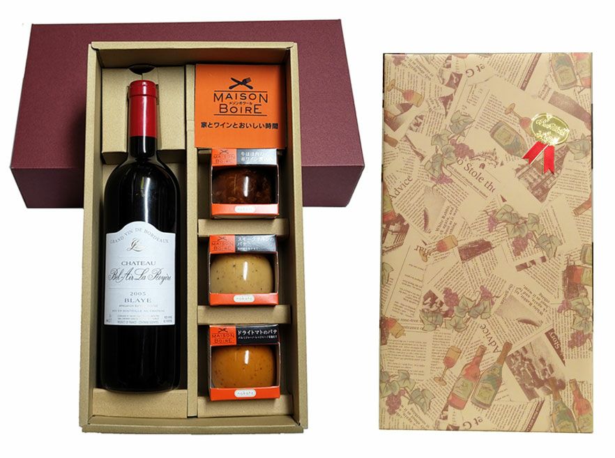 他の画像を見る ワイン&ワインに合うおつまみギフトセット ワイン通が貰って嬉しいプレゼント【飲み頃熟成ボルドー】シャトー・ベレール・ロワイエール・ルージュ 2005 &【ワインに合うおつまみ3種】 2種のチーズのパテ・国産鶏レバーのパテ・ドライトマトのパテギフト包装代金込・送料込 当店通常販売価格 ¥ 9,190 税込 在庫切れ 詳細を見る お気に入りに登録する