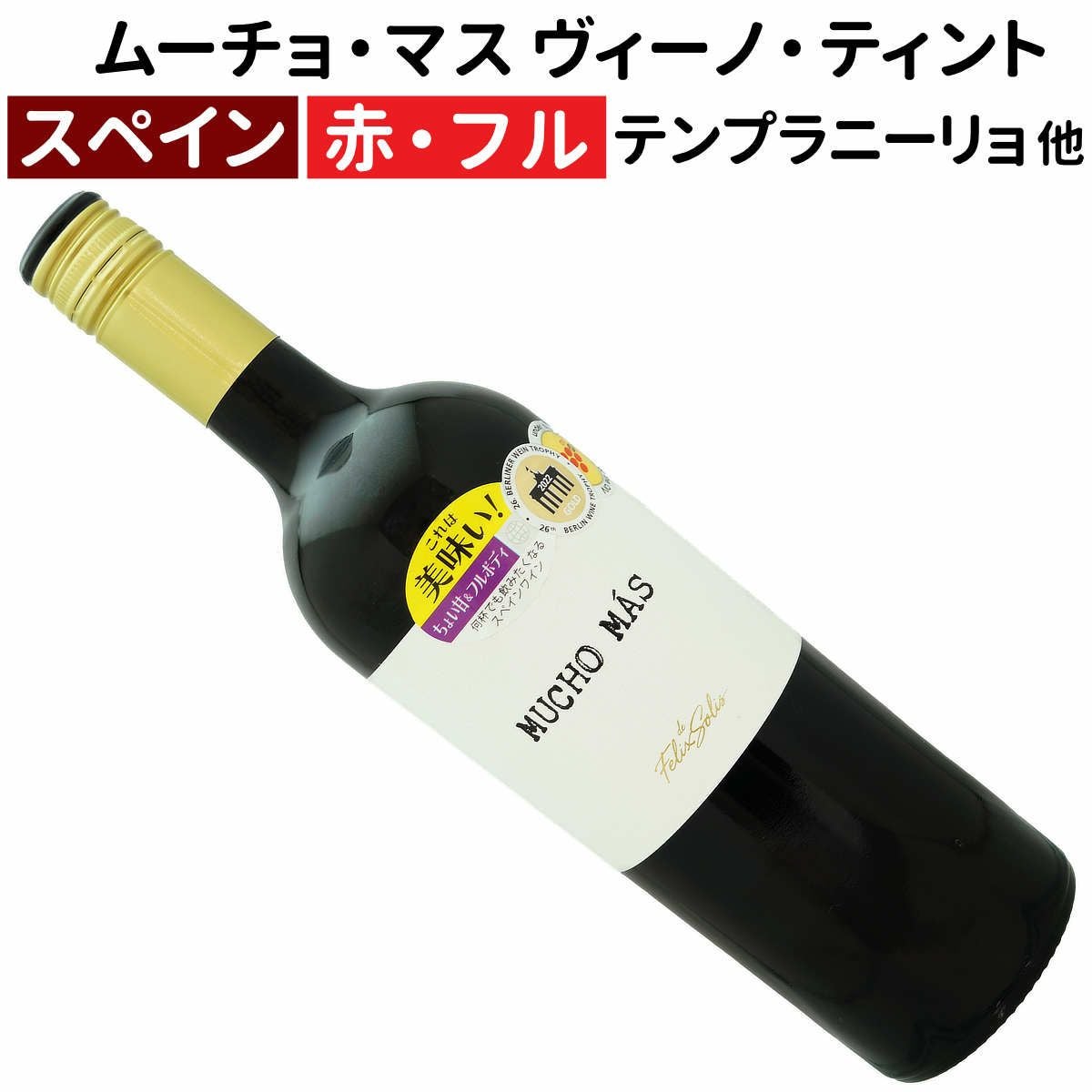 他の画像を見る スペインワイン|ムーチョ・マス ヴィーノ・ティント(赤)NV フェリックス・ソリス赤ワイン フルボディー 当店通常販売価格 ¥ 1,030 税込 会員特別価格 ¥ 1,015 税込 詳細を見る お気に入りに登録する